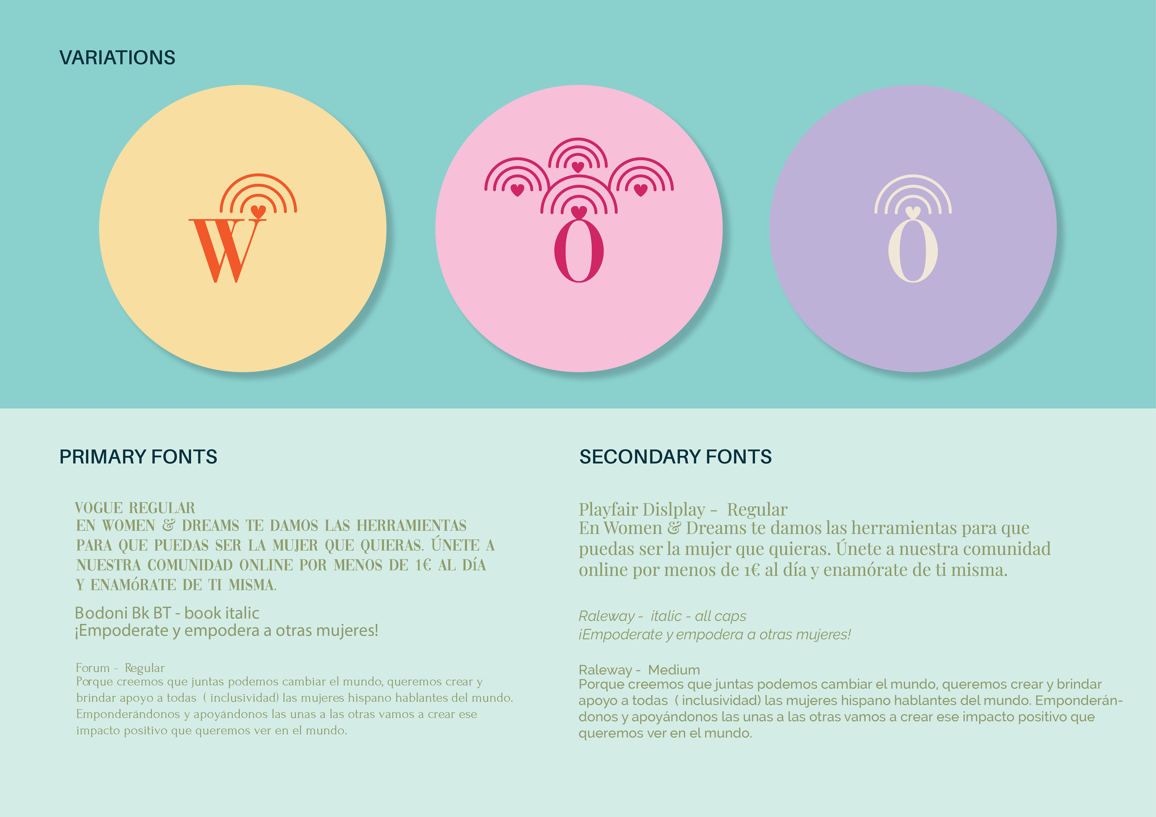 Identidad visual, dirección de arte y contenido creativo para Women & dreams. Una plataforma para fomentar el conocimiento y aprendizaje entre mujeres y para mujeres.